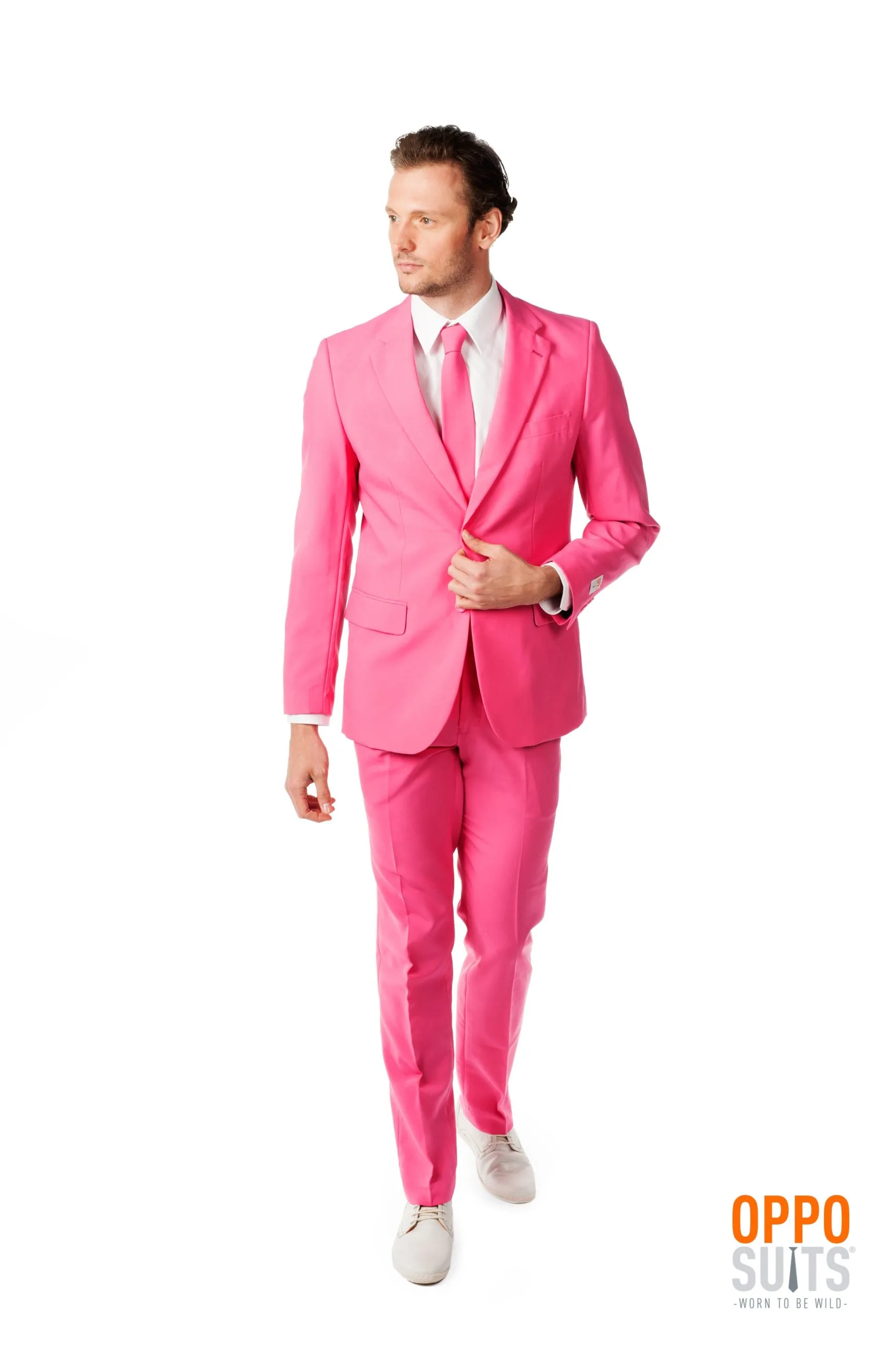 Wil je eens in iets vets onderscheidends steken voor jouw volgende feest? Wij zien je al staan op het zomerse tuinfeest of cool festival. In dit jasje-dasje (en broek natuurlijk) van Opposuits. Vet roze en vet classy. Mooi wit overhemd eronder en je ziet er uit om door een ringetje te halen. Misschien dat je vrienden in dezelfde (of juist een andere) kleur gaan en ben je herkenbaarder dan wie dan ook? Het is in ieder geval een echt kostuum, geen snel in elkaar genaaide hobbezak die voor geen meter zit. Dit ademt klasse en gevoel voor detail. En feestelijkheid. En je weet wat voor veel dames de lievelingskleur is, toch?
